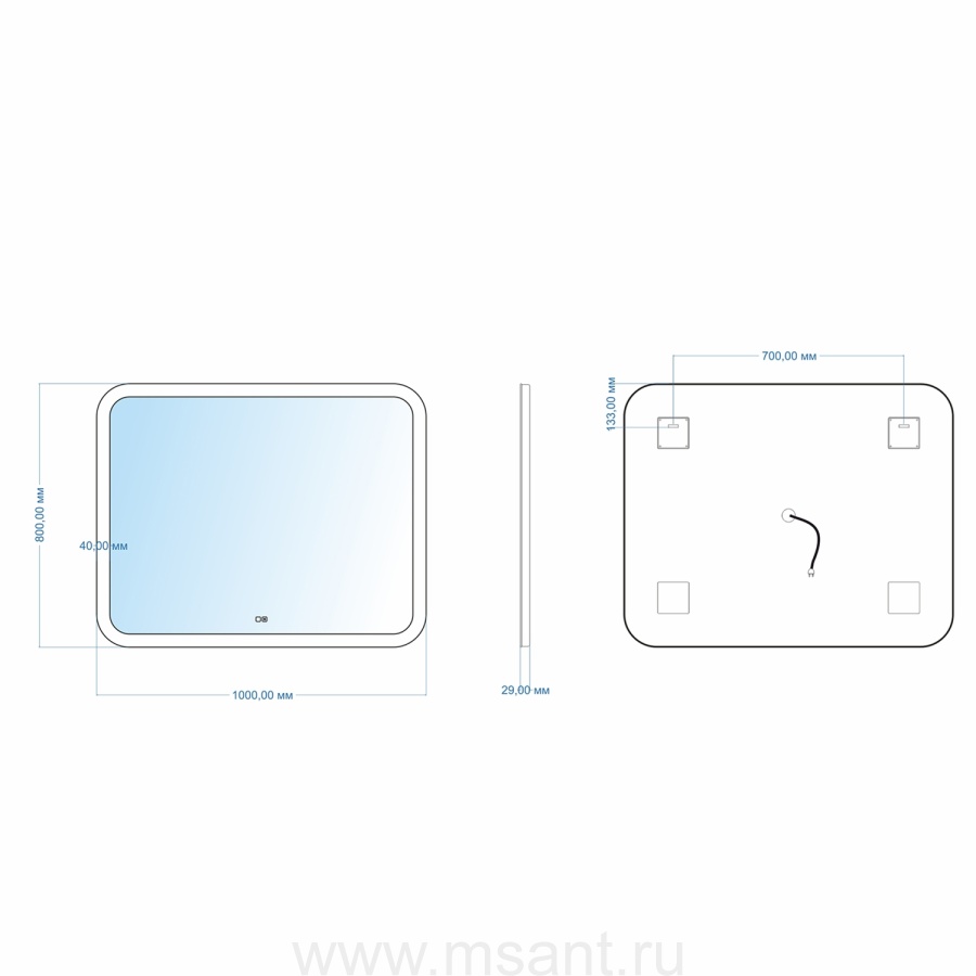 Зеркало MIXLINE "Стив-2" 1000*800 (ШВ) сенсорный выключатель, двойной подогрев
