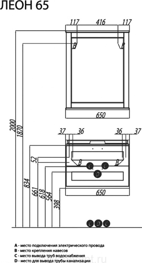 Тумба для комплекта AQUATON Леон 65 дуб бежевый, подвесная