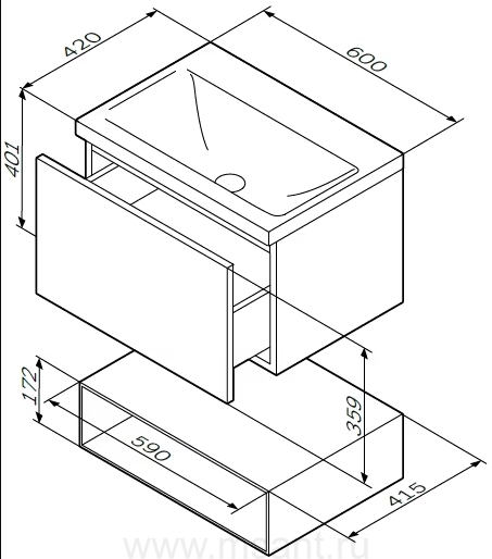 Мебель для ванной AM.PM Gem 60 белый глянец, с 1 ящиком