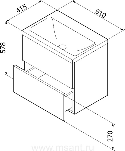 Тумба для комплекта AM.PM Gem 60 белый глянец, подвесная, с 2 ящиками