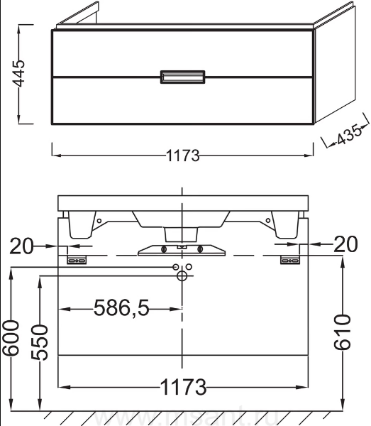 Тумба для комплекта Jacob Delafon Reve 120 белый лак, 2 ящика