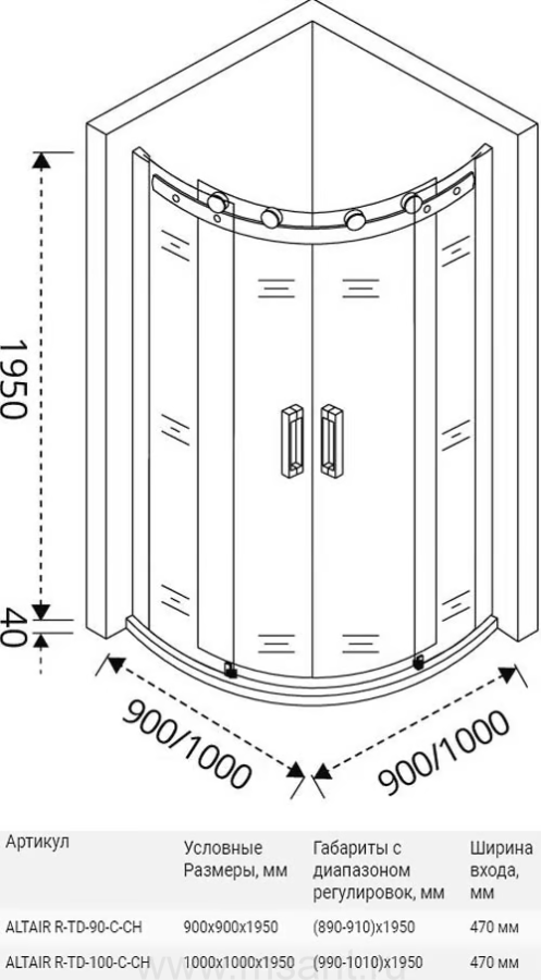 Душевой уголок Good Door Altair R-TD-100-C-CH