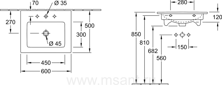 Раковина Villeroy & Boch Venticello 412460R1 60х50, alpin ceramicplus, с переливом