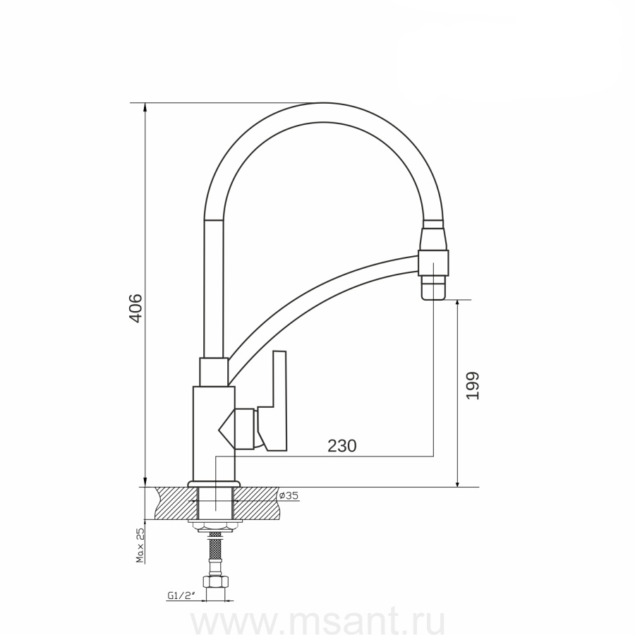 Смеситель для кухни 35к MIXLINE ML26-10 "Life" гибкий излив, б/отв, боковая ручка