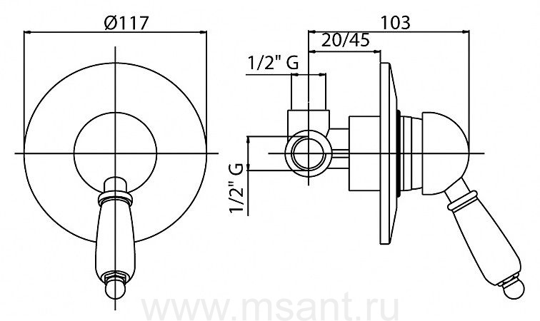 Смеситель Cezares Vintage DIM-03/24-Sw С ВНУТРЕННЕЙ ЧАСТЬЮ, для душа