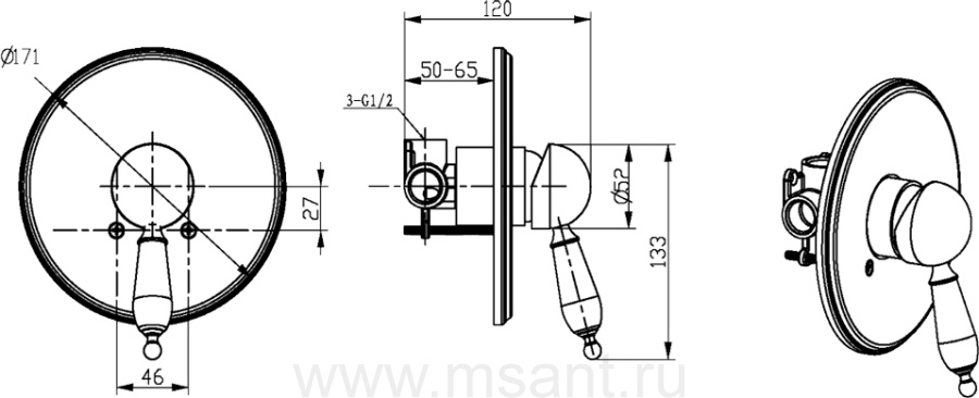 Смеситель Boheme Provanse Ripresa 365 С ВНУТРЕННЕЙ ЧАСТЬЮ, для душа