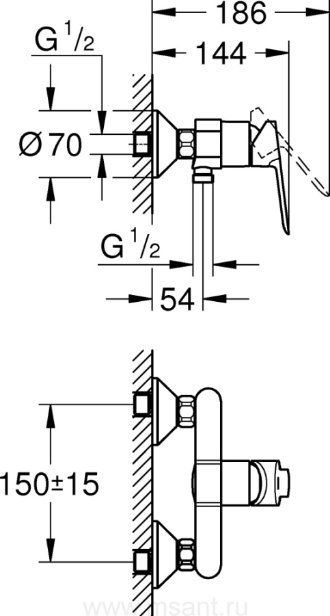 Смеситель Grohe BauEdge 23636000 для душа