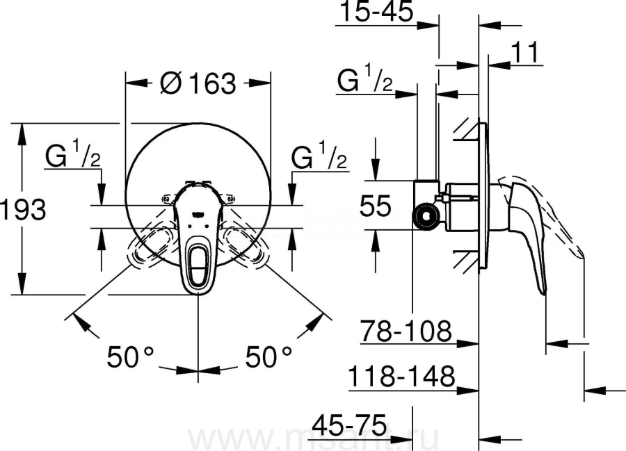 Смеситель Grohe Eurostyle New 33635003 С ВНУТРЕННЕЙ ЧАСТЬЮ, для душа