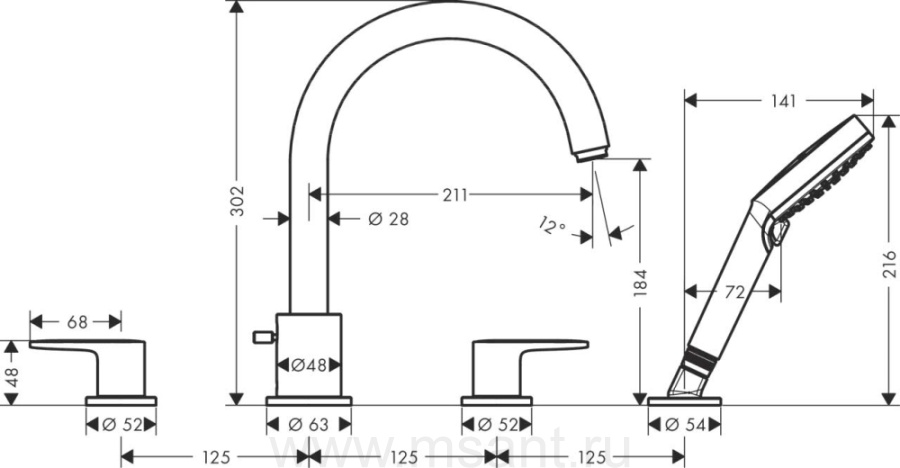Смеситель Hansgrohe Vernis Blend 71456670 на борт ванны, черный