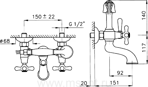 Смеситель Nicolazzi Nuova Brenta 2501BZ для ванны с душем, бронза
