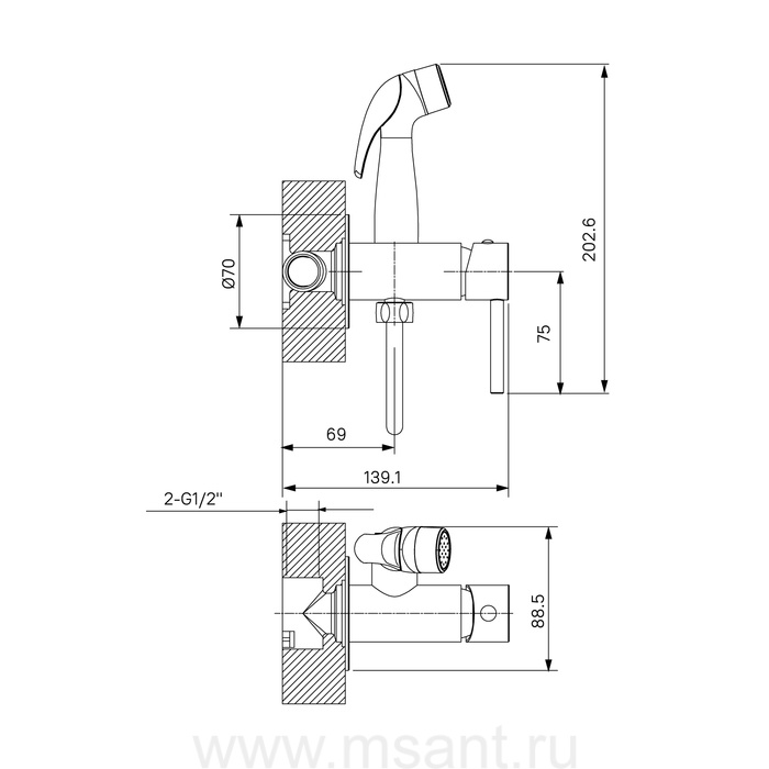 Встраиваемый смеситель с гигиеническим душем, черный матовый, Tidy, Milardo, 001BLR0M08