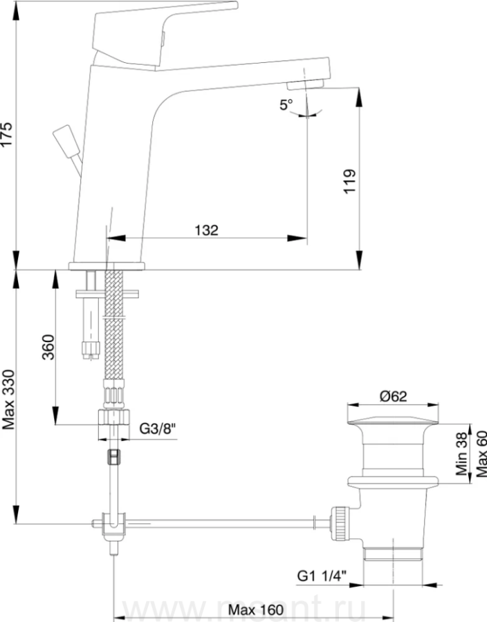 Смеситель для раковины E.C.A. Tiera 102188012EX