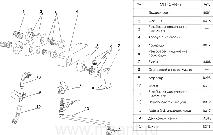 Смеситель Wasserkraft Exter 1602L универсальный, светлая бронза