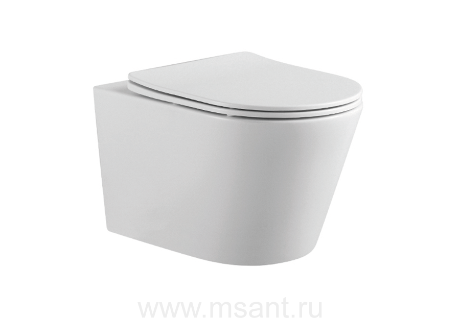 Унитаз подвесной безободковый AQUATEK ВЕГА AQ1905-MW 525*360*320 мм, белый матовый, горизонтальный выпуск, тонкое сиденье с механизмом плавного закрывания, крепеж