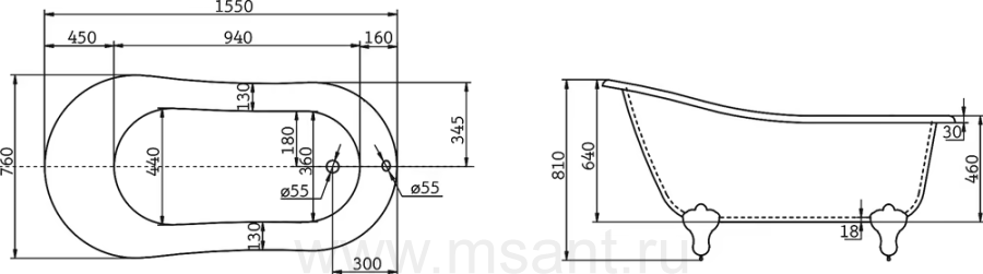 Акриловая ванна BelBagno BB06-1550 155x80