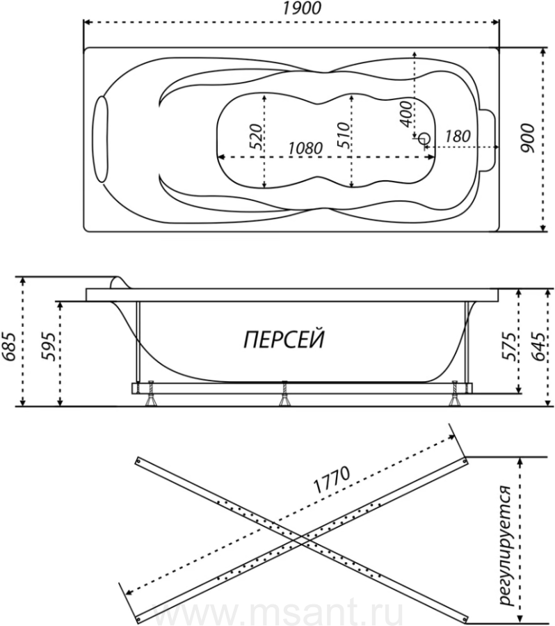 Каркас усиленный для прямоуг. ванн 170-190*75-90 универс. 5 опор (177 см.)