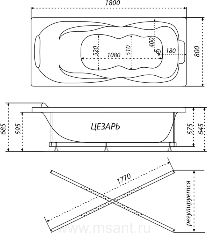 Каркас усиленный для прямоуг. ванн 170-190*75-90 универс. 5 опор (177 см.)