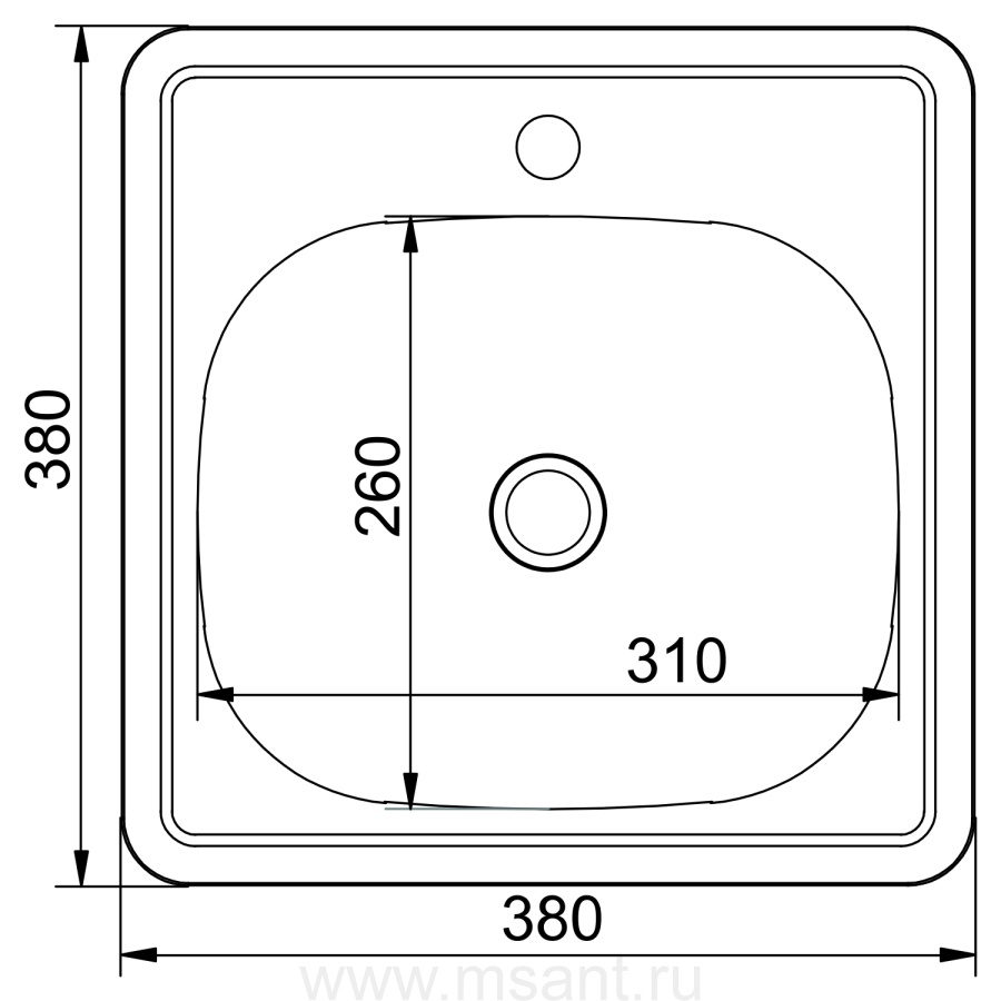 Мойка врез 38х38 (0,6) вып 1 1/2 MIXLINE 15см с гофросифоном