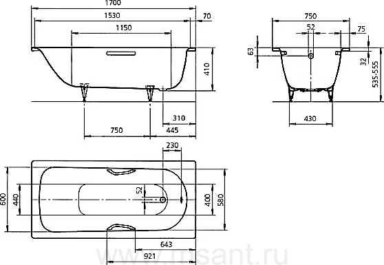 Стальная ванна Kaldewei Advantage Saniform Plus Star 336 170x75 с покрытием Easy-Clean